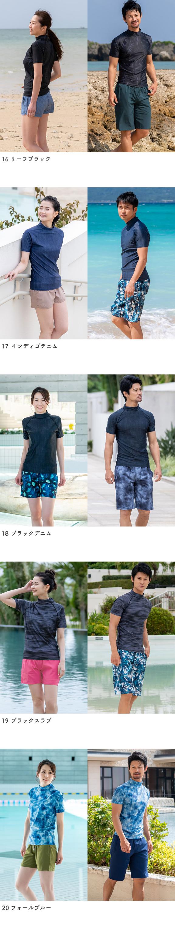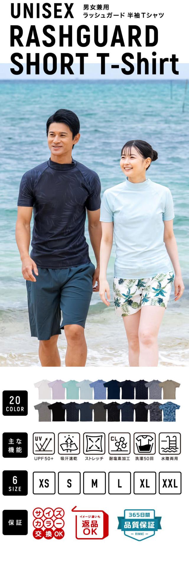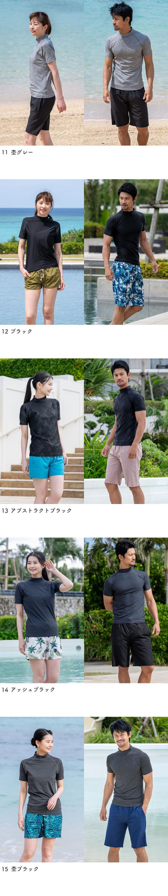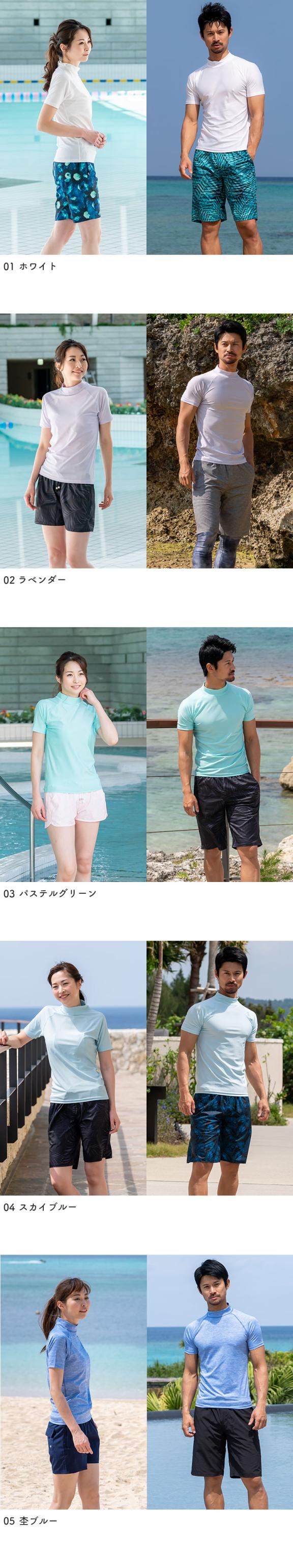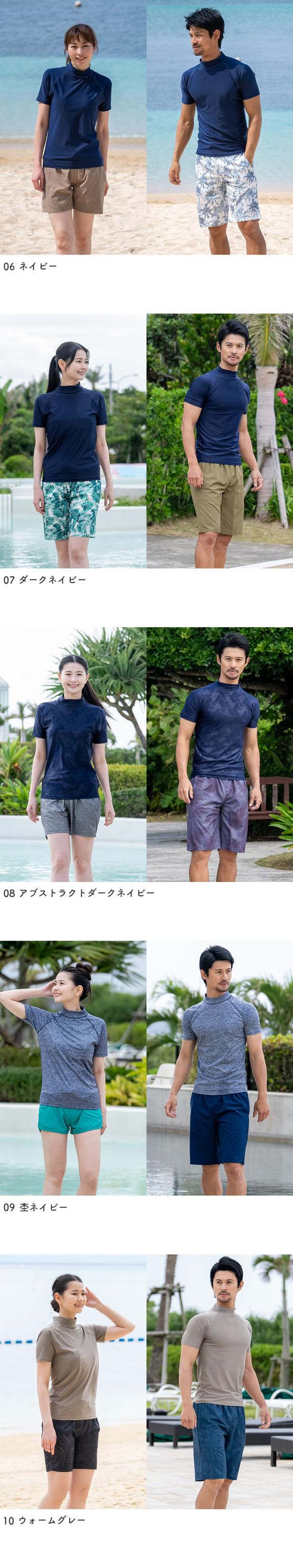 ラッシュガード ユニセックス 半袖Tシャツ 立ち襟 水着 レディース メンズ 体型カバー 日焼け対策