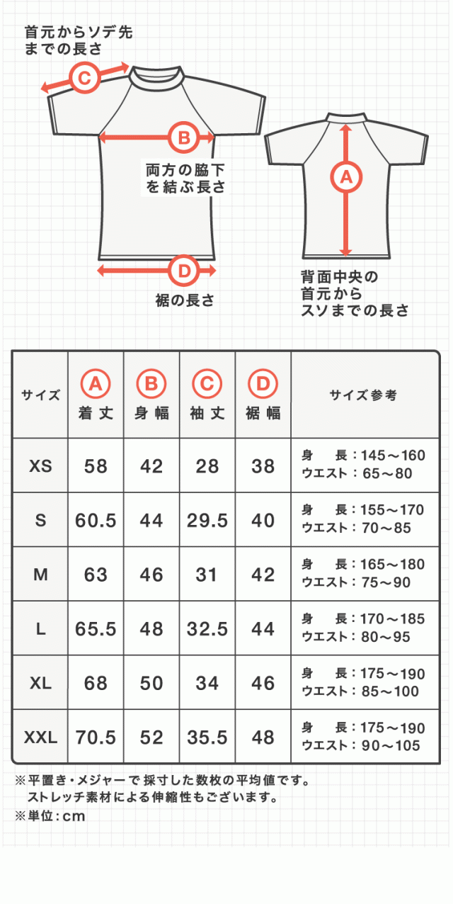 - 150cm50kgでSサイズを購入しました。フィットがちょうど良く大変満足しています。この夏、空調服のアンダーとして重宝しそうです。もう少しお値段が安いとありがたいのですが、、、