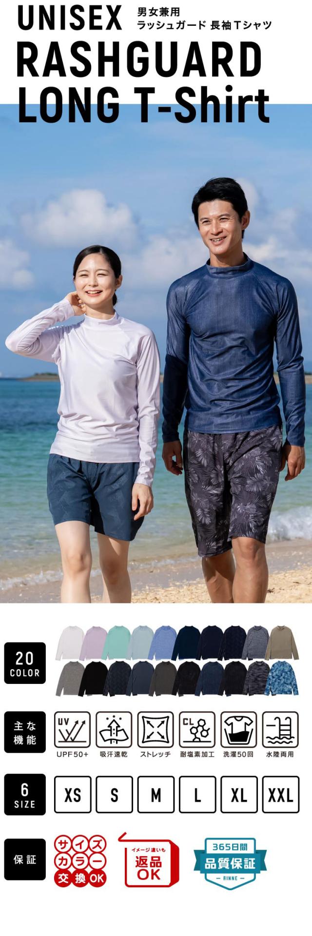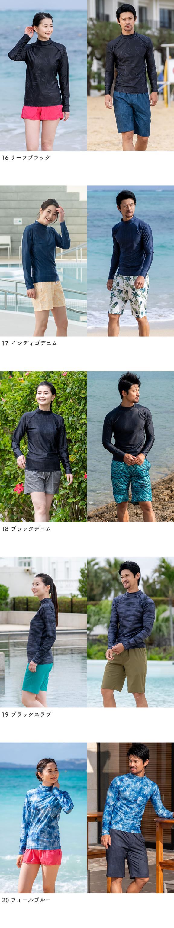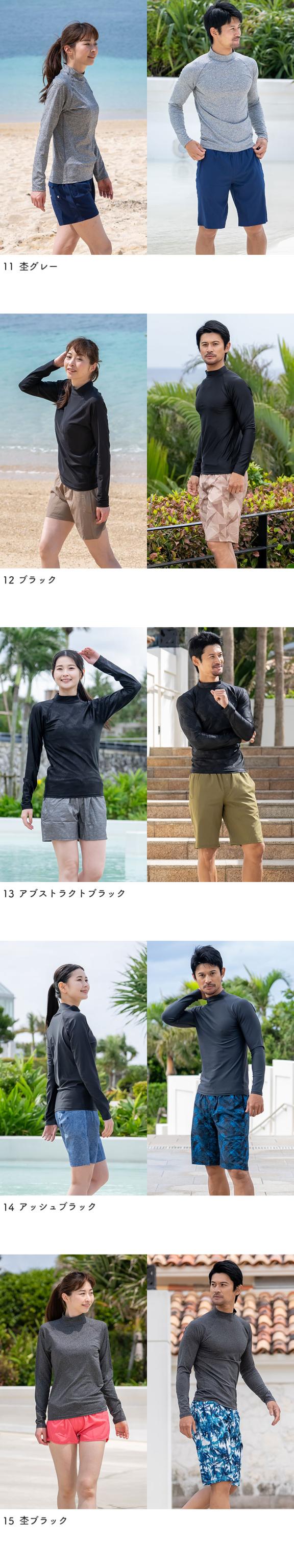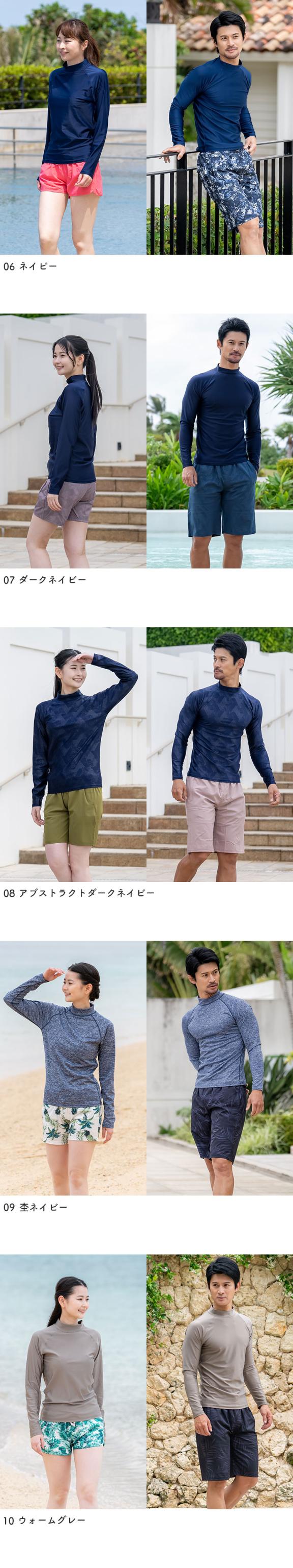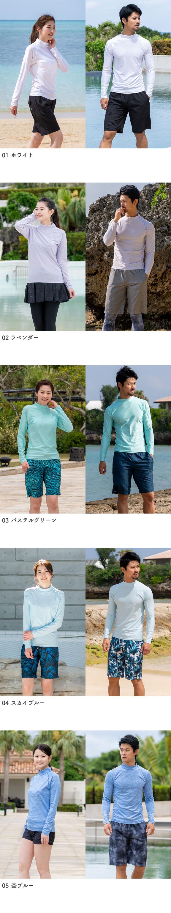 ラッシュガード ユニセックス 長袖Tシャツ 立ち襟 水着 レディース メンズ 体型カバー 日焼け対策