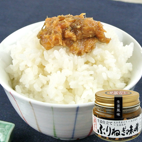 大分県産の新鮮なぶりをすり身にして、地元大分の味噌とねぎ、生姜で味付けして手作りしたおかず味噌です。ぶりの旨味、ねぎの風味が生きた逸品はごはんのお供やおにぎりの具、お茶漬けや手巻き寿司の具としても美味です。