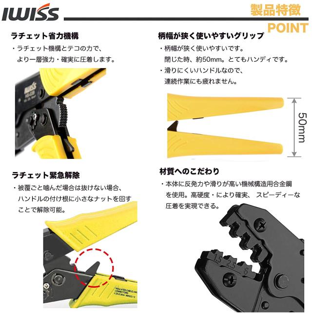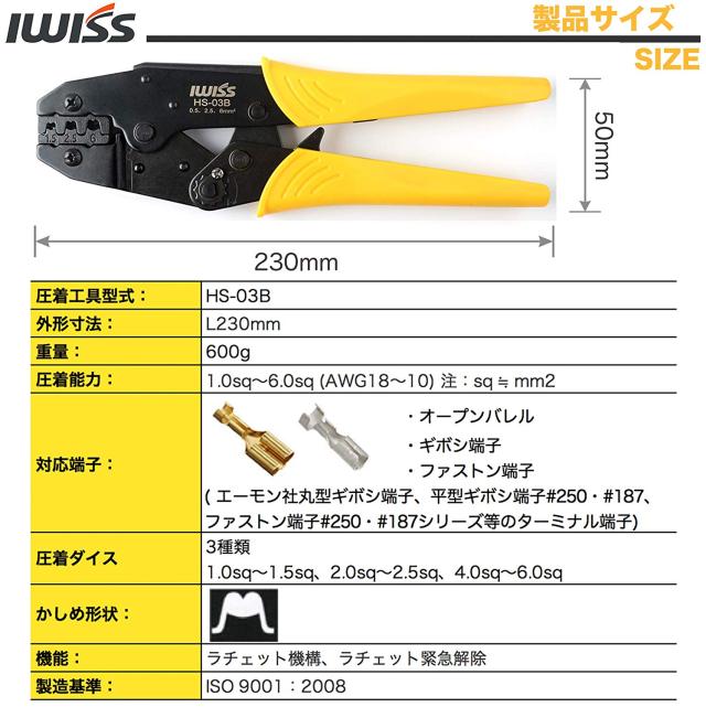 IWISS ラチェット式 ギボシ端子 同時圧着ペンチ 1.5-6.0mm2対応 HS-03B
