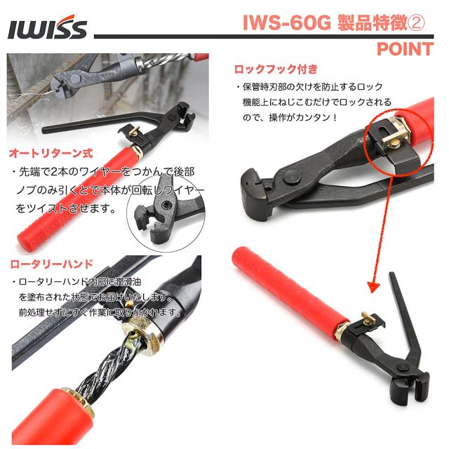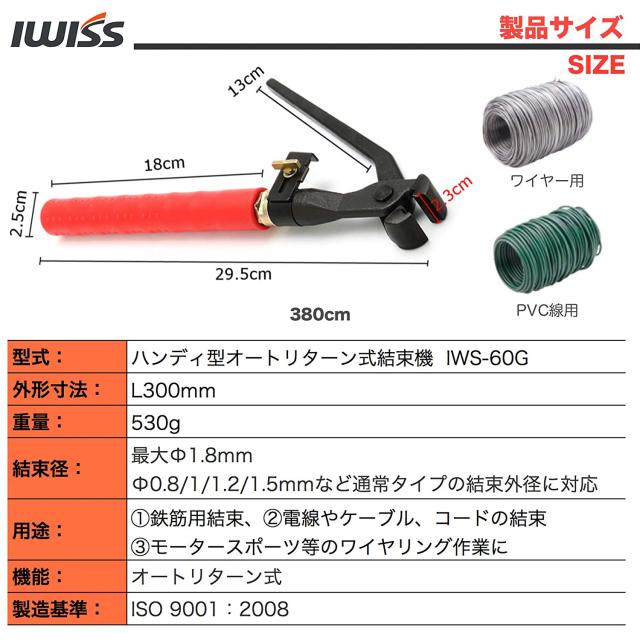 IWISS ハンディ型 結束機 オートリターン式 鉄筋結束 ワイヤリングに Φ1.8mm迄 IWS-60G