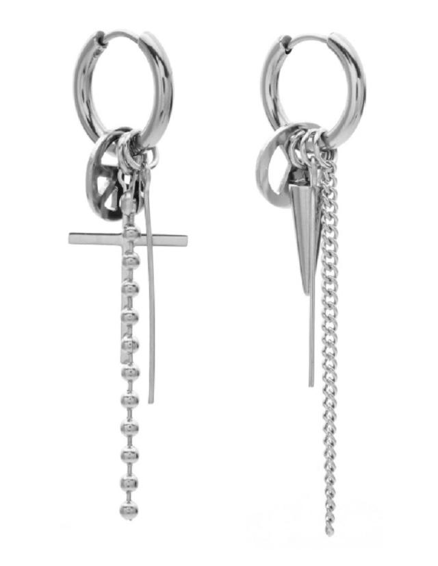 スパイク付きチェーンピアスと十字架クロス付きチェーンピアスの2個セットです。