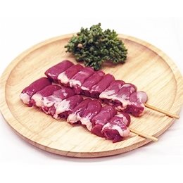 独特の食感と旨みが特徴の、国産若鳥ハツの串打ち加工品です。