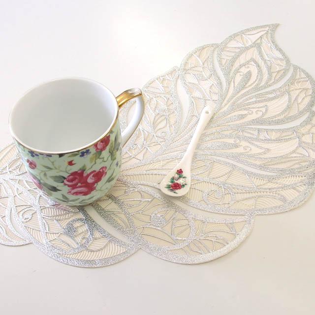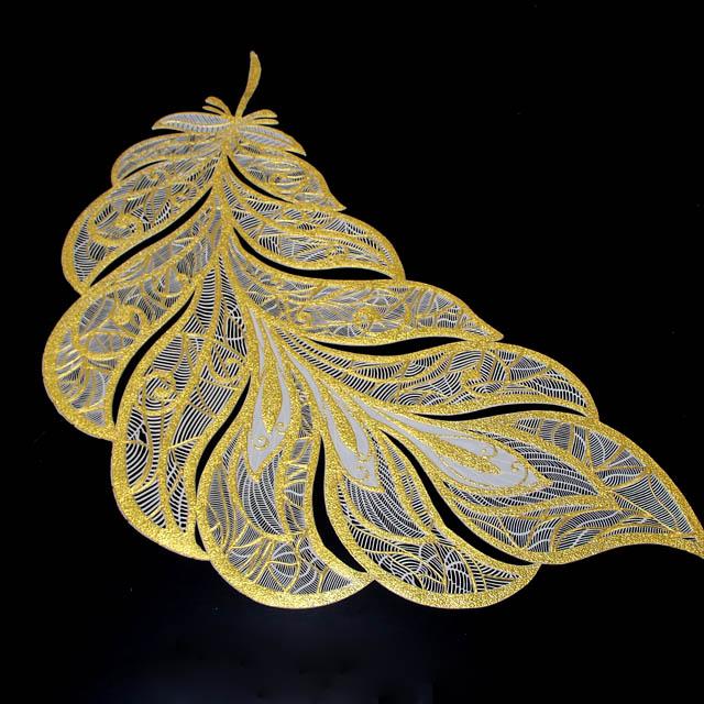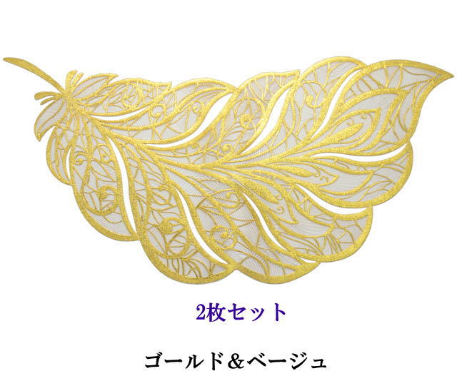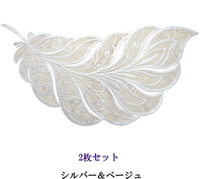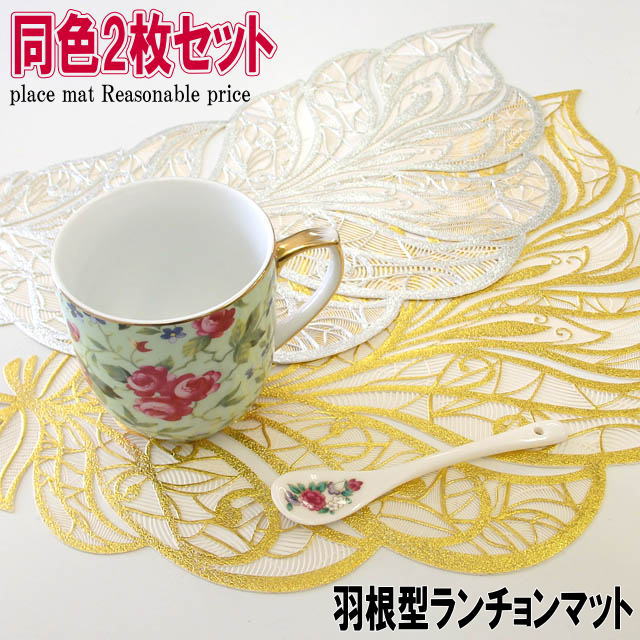 【在庫一掃★残りわずか】ランチョンマット 2枚入り 羽根デザイン ビニール 22×45cm シルバー ゴールド 撥水 おしゃれ キッチン 姫系 かわいい おしゃれ