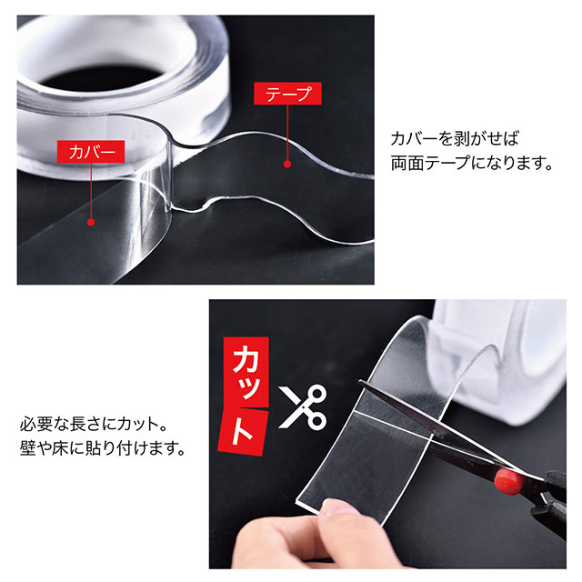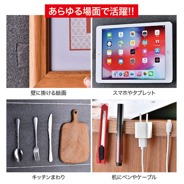 家具やカーペット留めや、リモコンやスマホを壁に貼り付けたりとあらゆる場所で使えます。