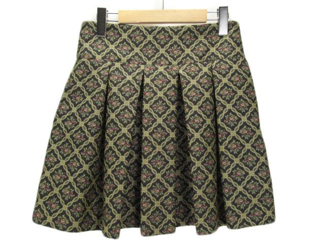 【中古】シンディー SINDEE スカート ボックスプリーツ 花柄 ジャガード M 黒 レディース