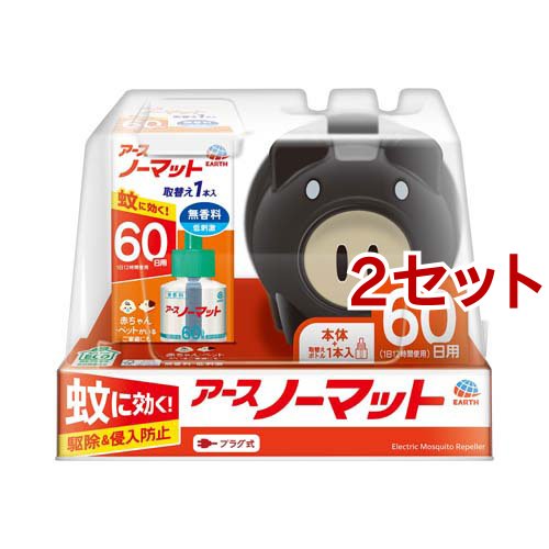 アースノーマット 蚊とり黒ブタ 60日セット 電子蚊取り器 蚊 駆除 退治 蚊よけ 対策(2セット)[虫除け プラグ式]