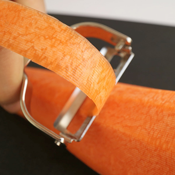 幅約8mm×厚み1.2mm前後の平麺状に剥けるベジヌードル専用のピーラーです。野菜だけで仕立てるヘルシーパスタをご自宅で簡単に作ることができます。