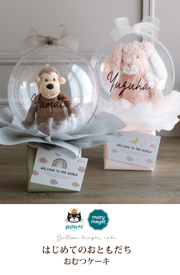 | 備考 | 当店では在庫を複数サイトで共有している為、同時にご注文があった場合売り切れとなる可能性がございます。 【おむつケーキについて】 お届けの際ぬいぐるみが正面を向いていない場合があります。本体を地面と平行に円を描くように回しながら向きを調整して下さい。 【発送不可地域】 北海道/青森/秋田/岩手/沖縄/離島/海外 【バルーンについて】文字部分はシールになっており、バルーンのガスが抜け小さくなるのに合わせて文字にシワが入ったり浮いてきたりします。 指でやさしく押してなぞり空気を抜くか、貼りなおして下さい。 こちらの透明バルーンは約1〜2カ月お楽しみいただけます。 バルーンにはつなぎ目がありますので、時間とともに多少シワや形状変化が、目立つようになります。 |