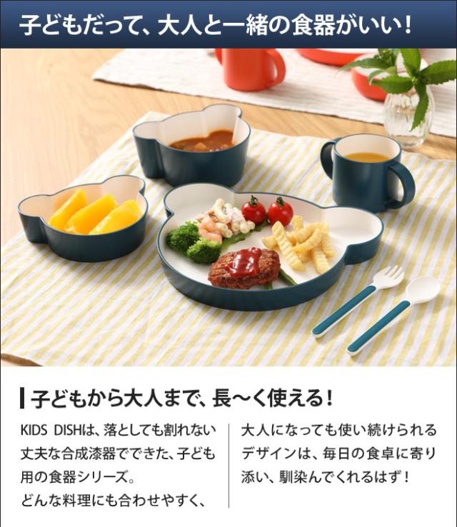 KIDS DISH ギフトボックスベアPETとABS樹脂を独自の配合で混合した、熱に強く頑丈な樹脂製素材の上に傷や汚れに強いウレタン塗装を施している、「合成(近代)漆器」でできています。