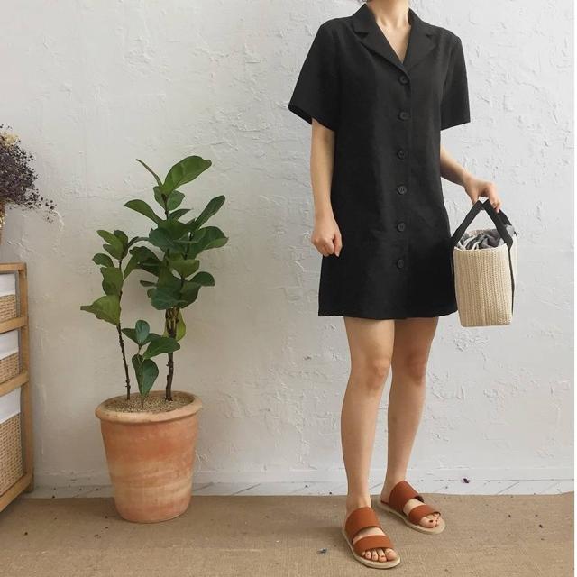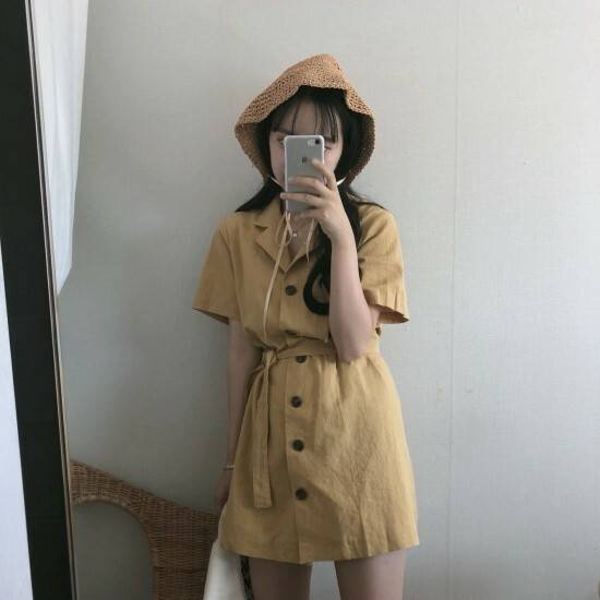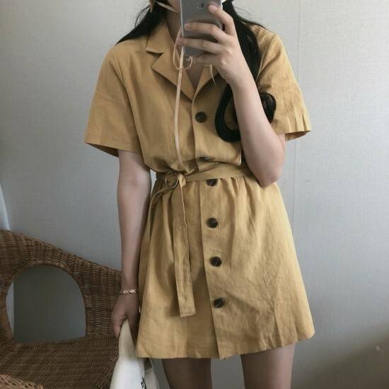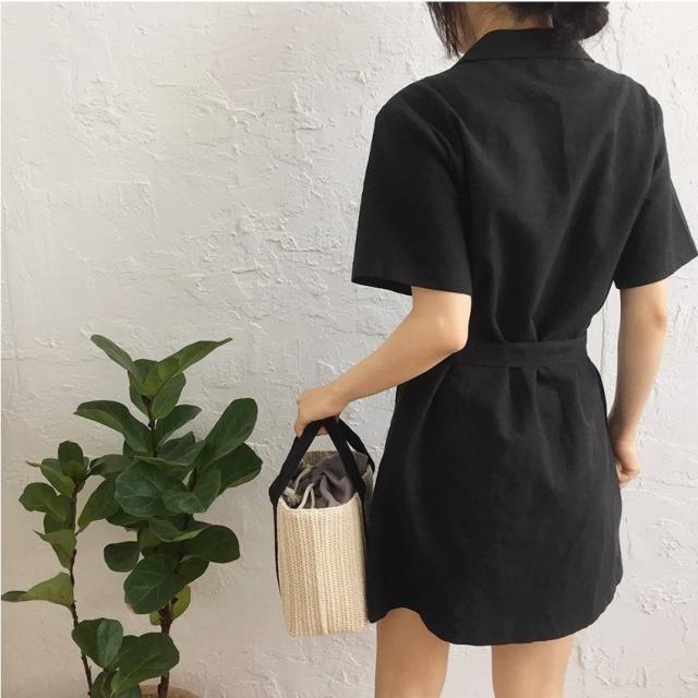シャツワンピース フロントボタン レトロ ミニ丈 ワンピース 可愛い 春 夏 ベルト付き 開襟 韓国ファッション おしゃれ フェミニン トップス レディース トレンド カジュアル 普段着 デイリー 通学 通勤 デート ビジネス オフィス お出かけ ショッピング 女子会 食事会