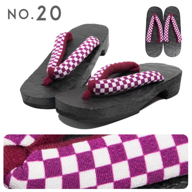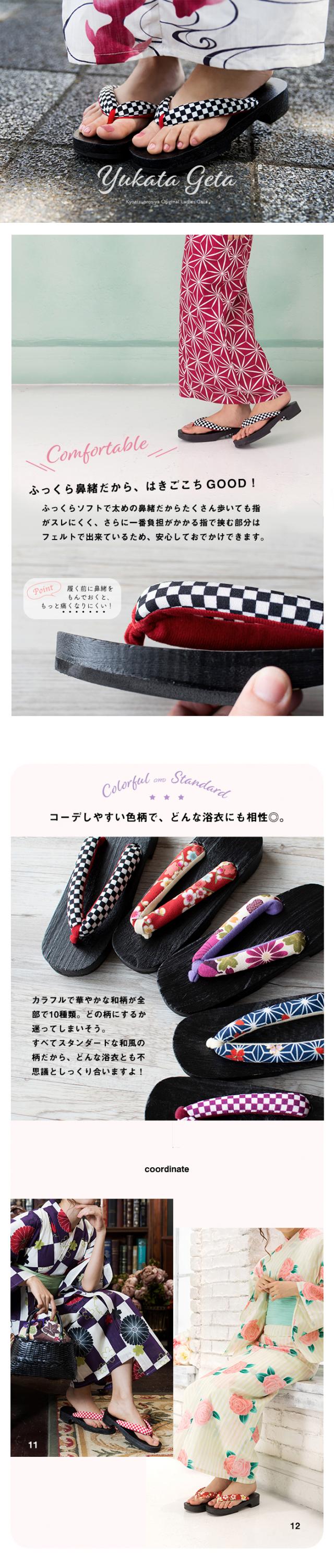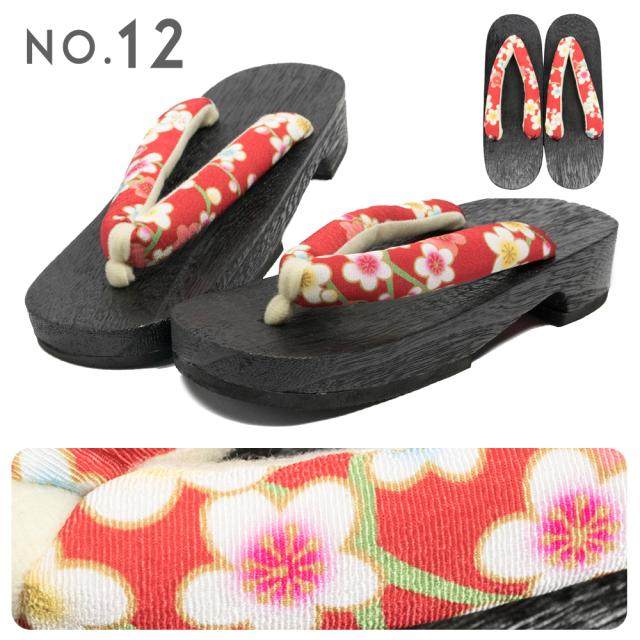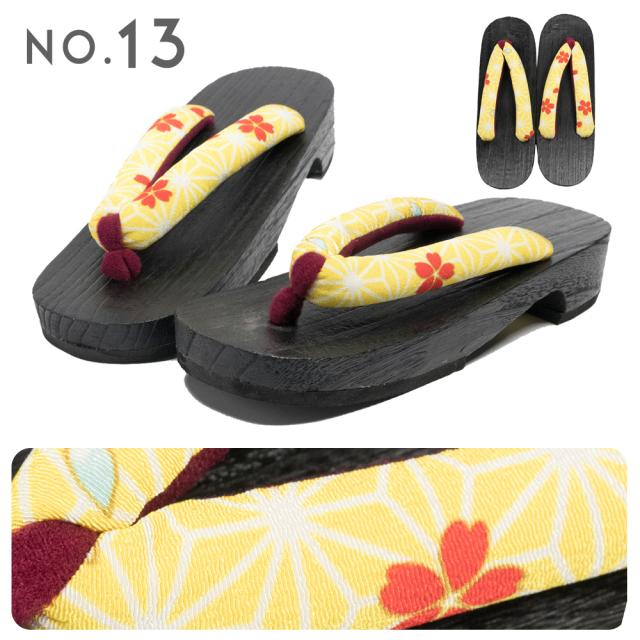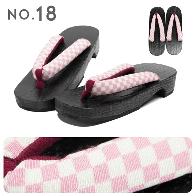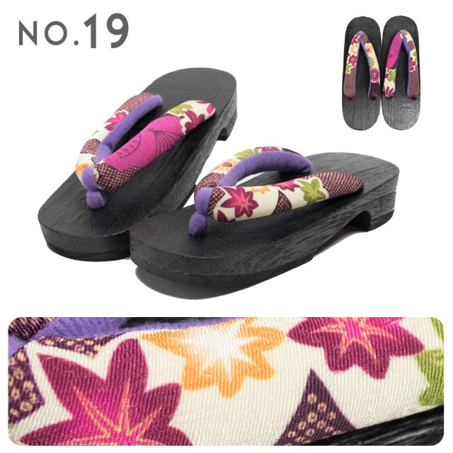 女性用の下駄です。鼻緒部分が鮮やかでかわいい柄になっています。