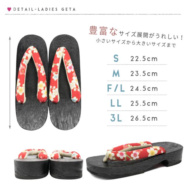 - 妹のために購入しました。F(L)サイズを購入。普段は24cmから24.5cmを履いています。届いた第一印象としては「幅が狭いな」という感じでしたが履いてみると小指が少しはみ出る程度で、実際に祭りに履いて行きましたが「鼻緒が柔らかく足が痛くならなかった」と言っていました。浴衣との馴染みも良く、私も欲しくなりました。発送は大変迅速でした!