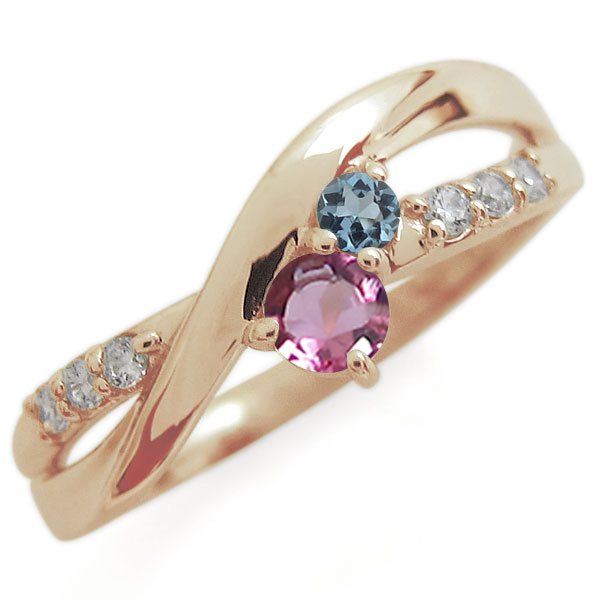 ピンクトルマリン リング 2本ライン シンプル 10金 指輪