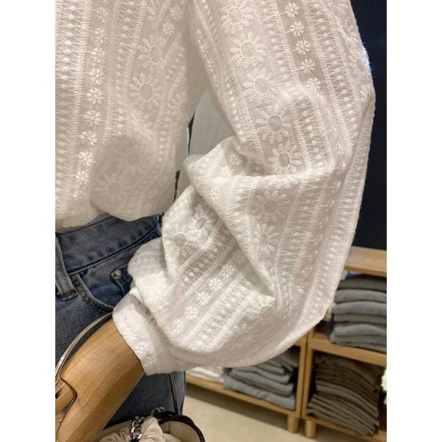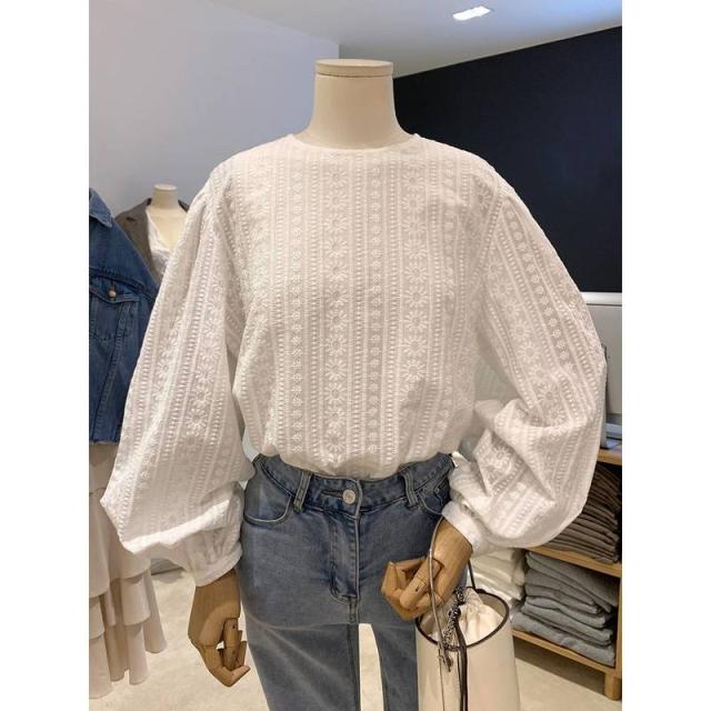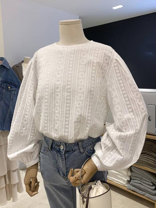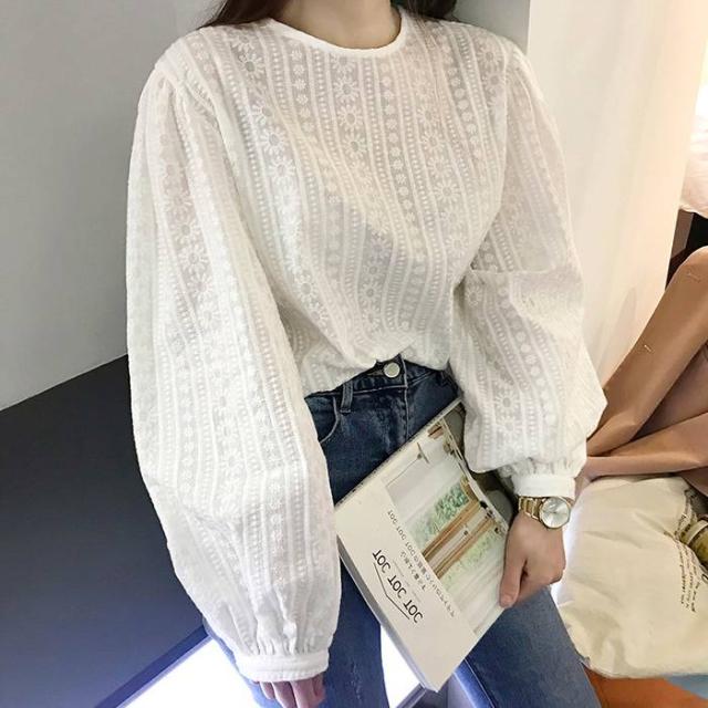 春 夏 おススメ! バルーン袖ブラウス 花柄 レース 透け感 刺繍 ボリューム袖 トレンド パフスリーブ 美スタイル フェミニン エレガント おしゃれ トップス レディース カジュアル 普段着 デイリー 通学 通勤 デート ビジネス オフィス お出かけ ショッピング 女子会 食事会