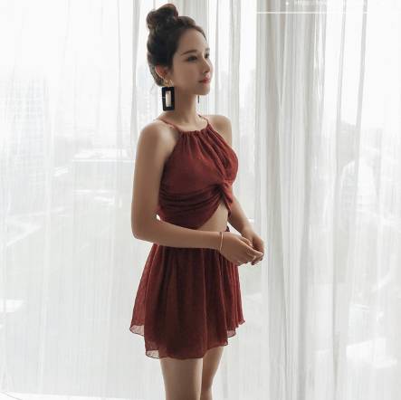 体型カバー 水着 タンキニ ビキニ 3点セット 大きいサイズ レディース 2019年新作 ビーチウェア 40代 30代 フレアスカート フリル セットアップ パッド付き カバーアップ 無地 シフォン 透け感 シンプル リボン 着やせ 韓国 ママ オシャレ XL 海 プール ビーチ リゾート