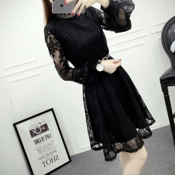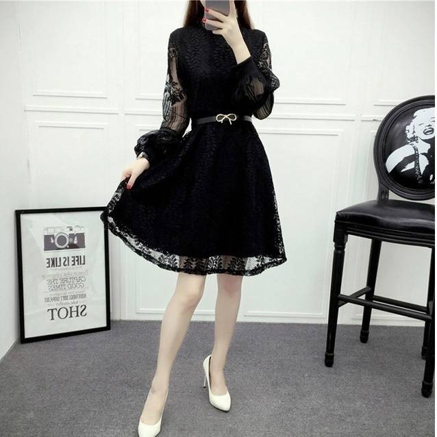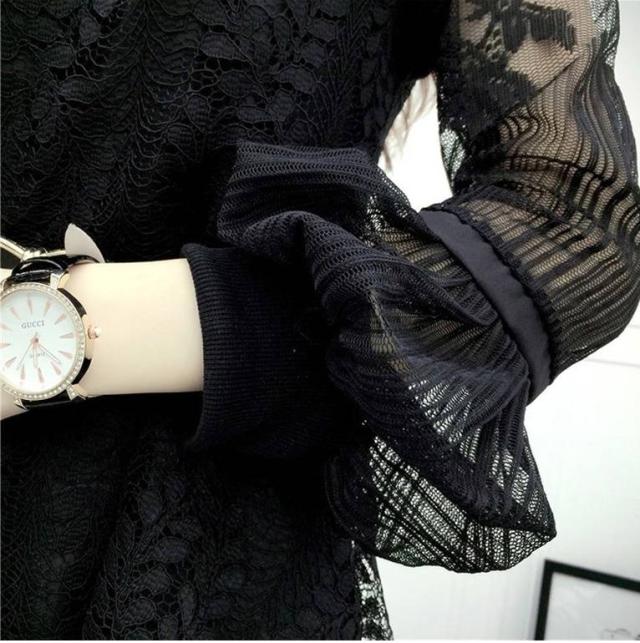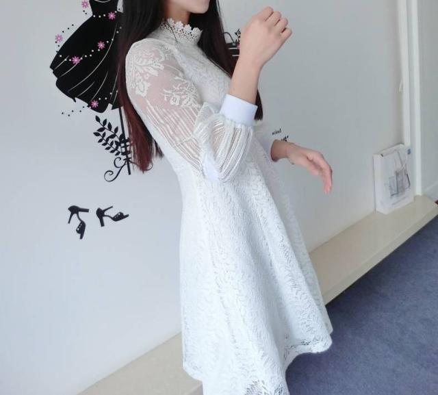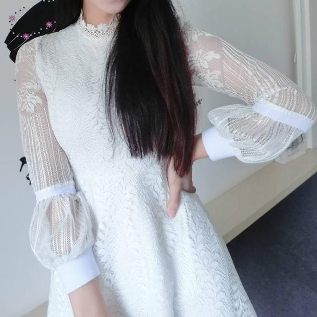 おススメ! パーティードレス 可愛いレース ハイネック パフスリーブ ボリューム袖 大きいサイズ 総レース ワンピース 透け感 長袖 フレア Aライン ミニ丈 上品 エレガント フェミニン 春 韓国ファッション レディース パーティー 結婚式 二次会 お呼ばれ フォーマル