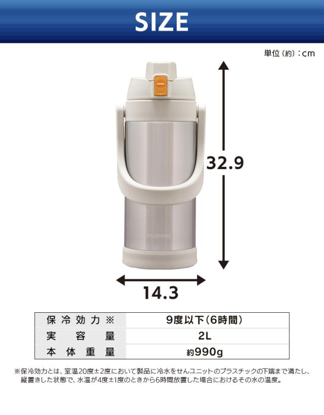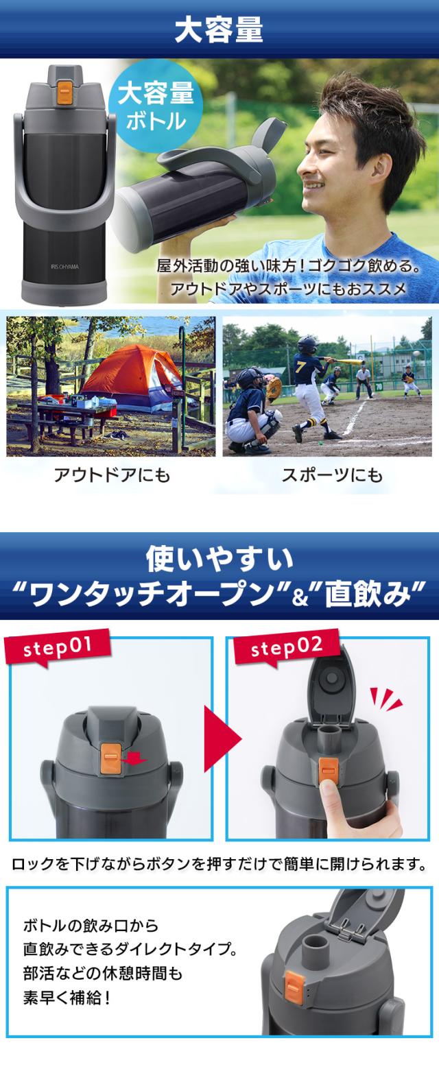 水筒 スポーツジャグ 子供 2リットル 2L 保冷 ステンレスボトル 真空断熱 直飲み ワンタッチ ロック付き スポーツ 小学生 部活 運動 アウトドア 屋外作業 スポーツドリンク 対応 大容量 子ども 2000ml ダイレクト ジャグ アイリスオーヤマ SJ-2000 *