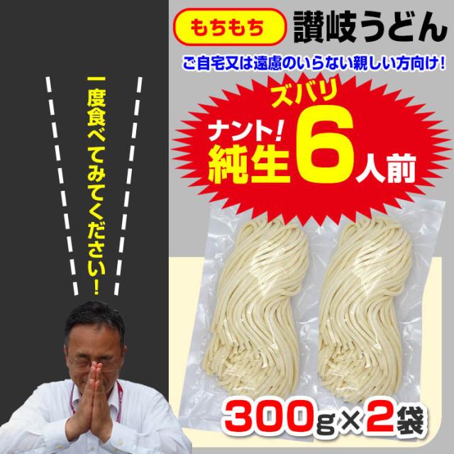 ■商品内容: 純生讃岐うどん・並切麺1袋300g×2袋(6人前)おためしつゆ付き