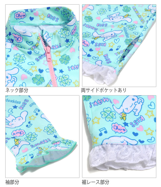 【メール便送料無料】キッズ水着 女の子用長袖ラッシュガード水着 Cinnamoroll シナモロール サンリオ キャラクター 女児 No.sw2371