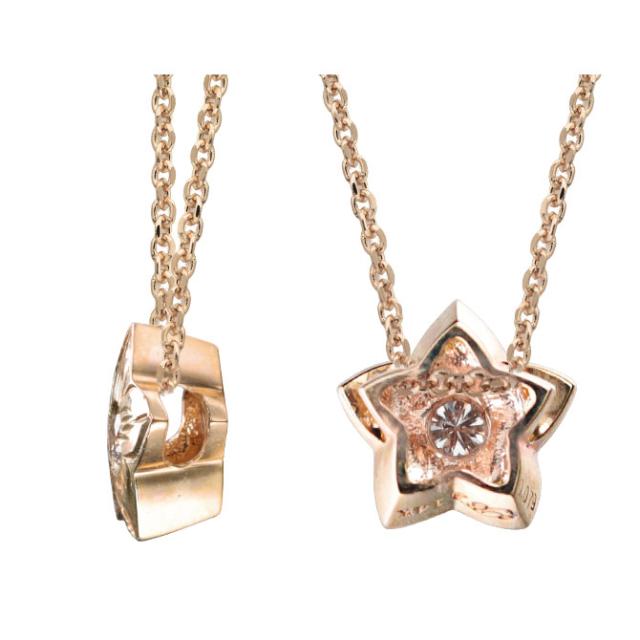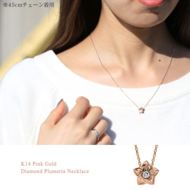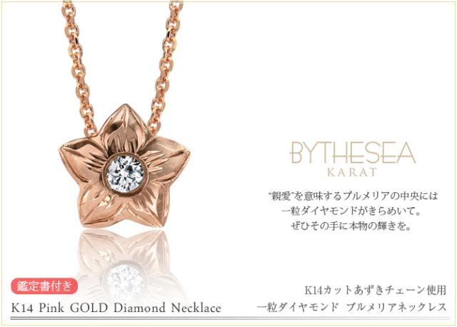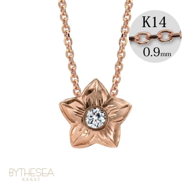 ハワイアンジュエリー ダイヤモンド ピンクゴールド ネックレス プルメリア スターフラワー 14K K14 一粒ダイヤモンド 鑑定書付 14k カットあずきチェーン太0.9mm ギフトラッピング可能 彼女 妻 女性 レディース プレゼント ホワイトデー 【品番:CG-GP102R-CH123】