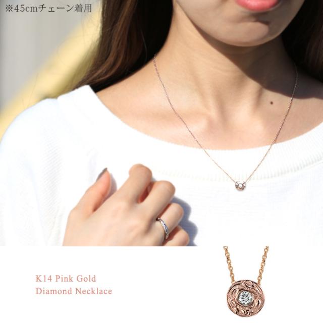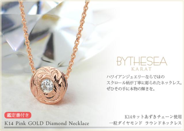 ハワイアンジュエリー ダイヤモンド ピンクゴールド ネックレス ラウンド 14K K14ピンクゴールド 一粒ダイヤモンド 鑑定書付 14k カットあずきチェーン太0.9mm ギフトラッピング可能 彼女 妻 女性 レディース プレゼント ホワイトデー 【品番:CG-GP104R-CH123】