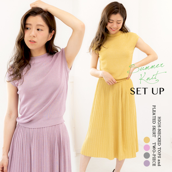 半袖 ハイネック プリーツスカート 上下セット