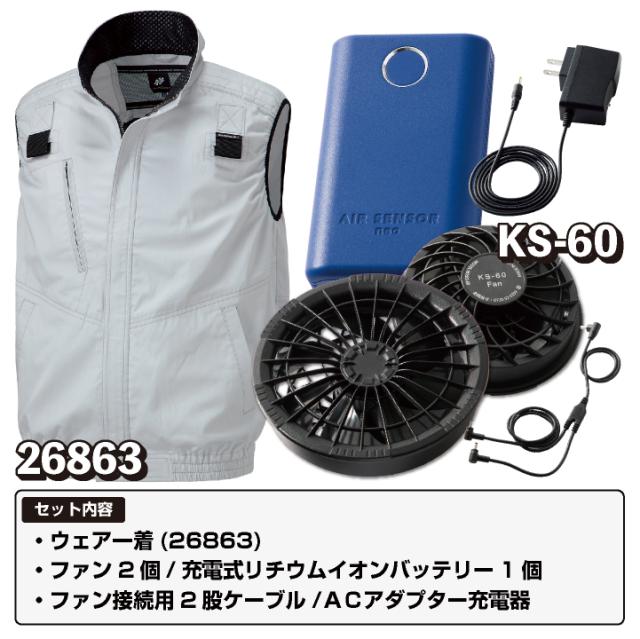 価格重視!! 軽量で一日使えるスペック 26863 KS-60 クロダルマ 空調作業服 フルセット ハーネス対応ベスト 涼しい 熱中症対策 工事現場 建設業 農作業 屋外作業 工場
