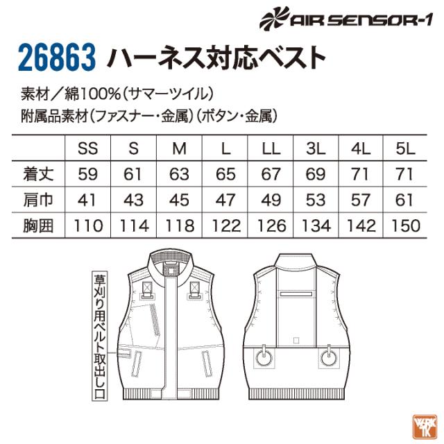 コスパ抜群 クロダルマ 服・ファン・バッテリーフルセット ベスト ハーネス対応 ファン付き作業着 作業服 春夏 空調作業服 空調ウェア 涼しい ファンユニット バッテリ 大きいサイズ メンズ レディース エアセンサー1 26863+KS-60 kd-26863-l