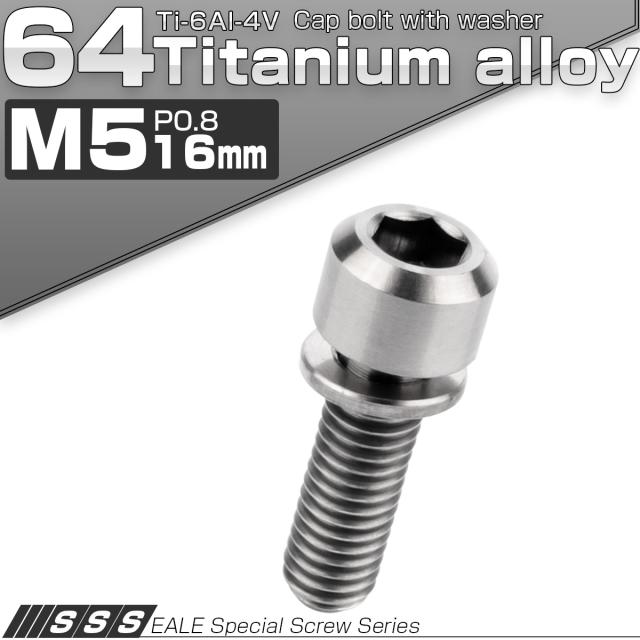 チタンボルト M5×16mm P0.8 ワッシャー付き キャップボルト 六角穴 シルバー チタン原色 JA309