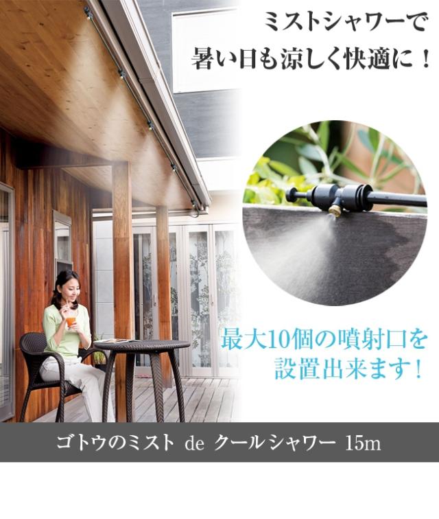 後藤 ミストdeクールシャワー 15m(ミストシャワー 屋外 屋外用 子供 業務用 ミスト シャワー ホース 散水 ミストカーテン 暑さ対策 熱中症対策 噴霧 犬 作業 アウトドア 庭 ベランダ ミスト発生器) 即納