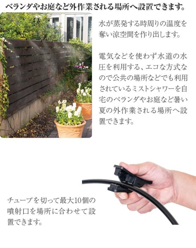 ミストシャワー 屋外 屋外用 子供 業務用 ミスト シャワー ホース 散水 ミストカーテン 暑さ対策 熱中症対策 噴霧 犬 作業 アウトドア 庭 ベランダ ミスト発生器