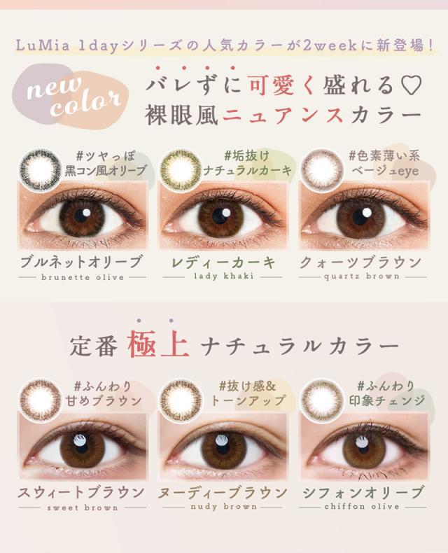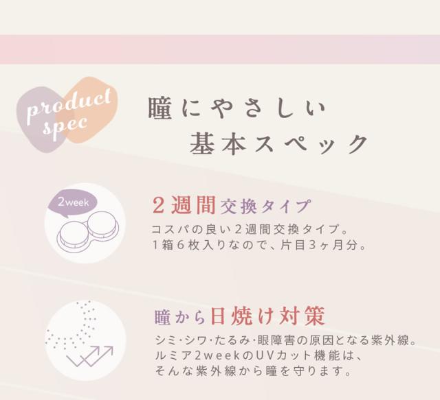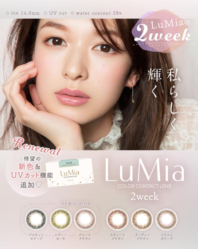 ルミア 2week UV 1箱6枚 (メール便送料無料) カラコン 2week 14.0mm 2週間 度あり 度なし LuMia 森絵梨佳 2ウィーク カラーコンタクト 通販