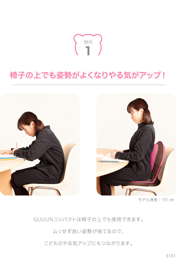 ●機能1:椅子の上でも姿勢がよくなりやる気アップにつながる!