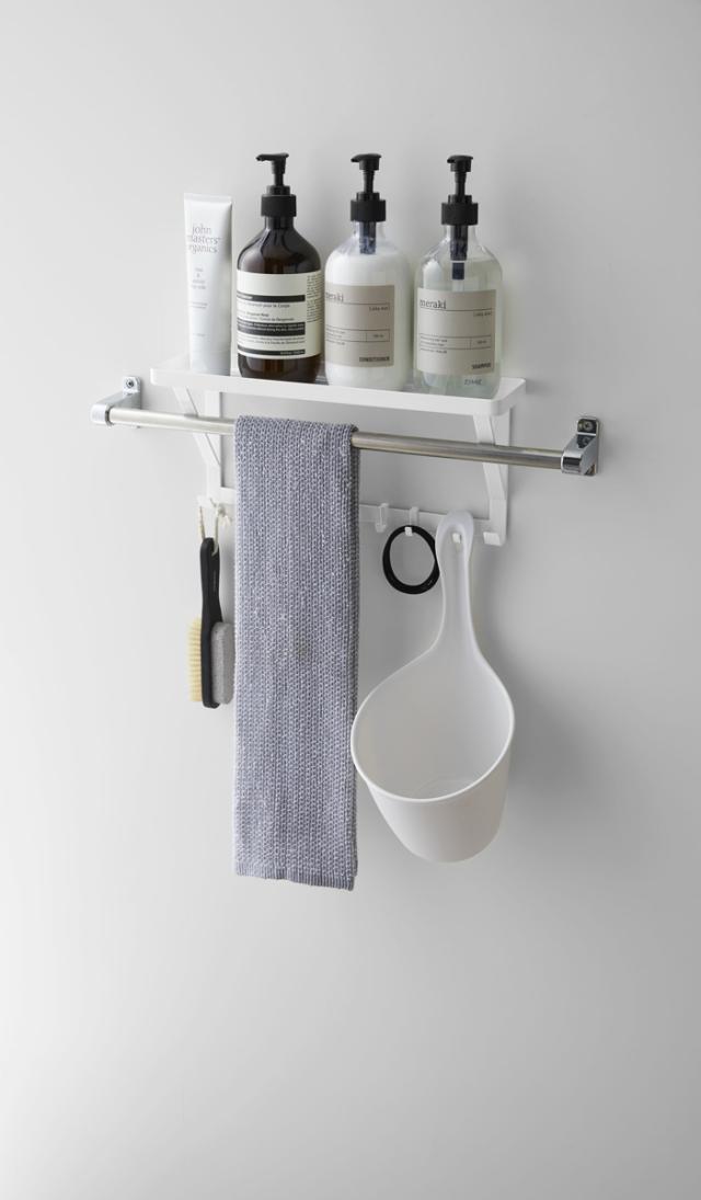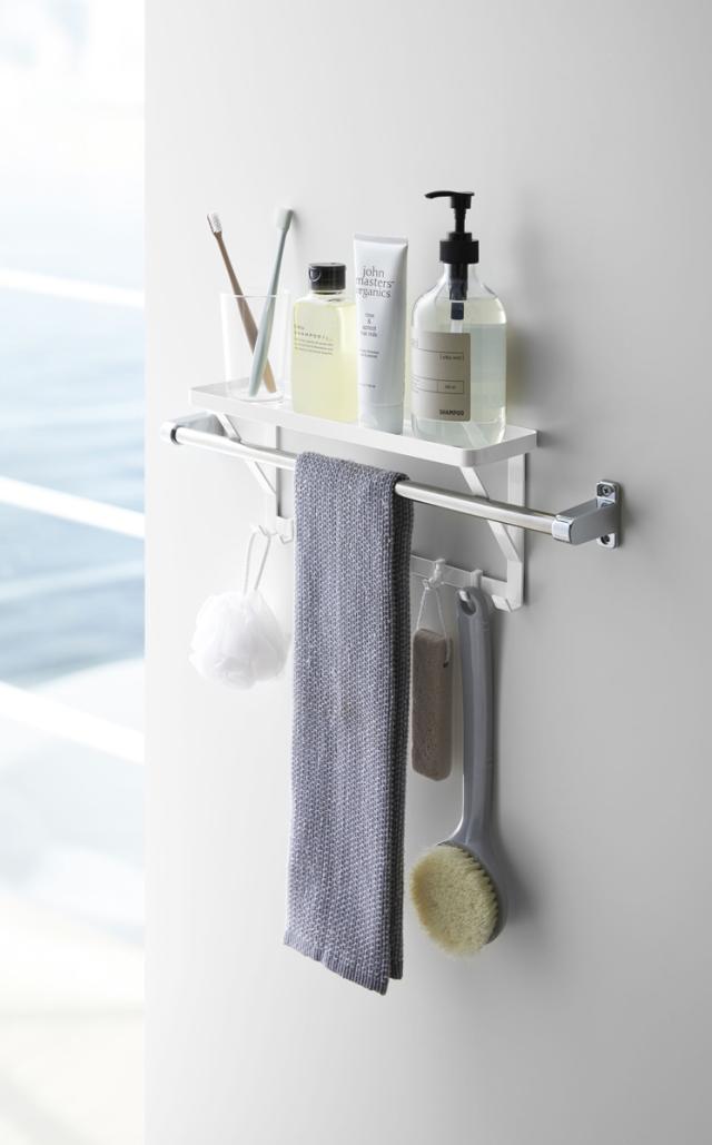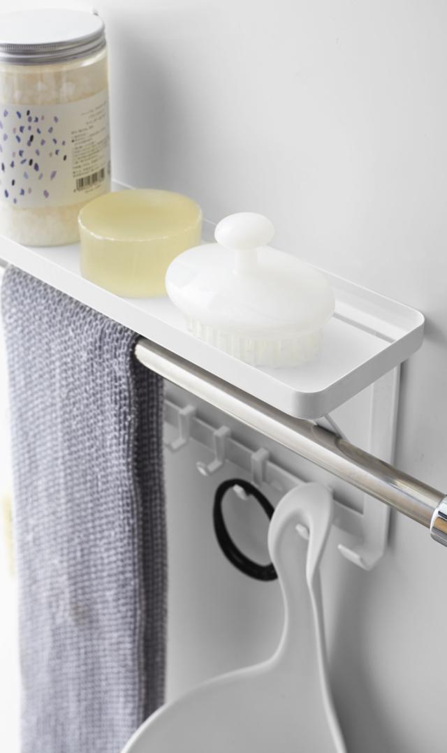 ●タオルバーに差し込むだけで簡単に設置できるラック。