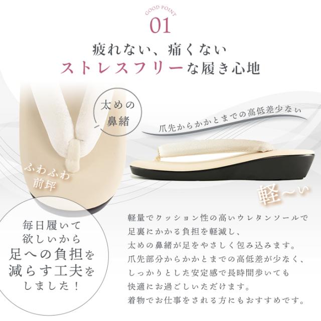 ▶ R芯草履 刺繍鼻緒 ▶ R芯草履 友禅鼻緒 ▶ ウレタン草履 刺繍鼻緒 ▶ パール草履 日本製 [サイズ] ※製造時期により若干の誤差が生じる場合がございます。 フリーサイズ(約/cm) 底全長:24.0 ヒール最高:3.5 鼻緒からかかと:20.0 横最長:8.1〜8.4 鼻緒からつま先:4.0 ※適合足サイズ22cm〜24cm [カラー] 全14色 [生産] 中国 [配送] 宅配便 ふんわりやさしい足入れの心地良さで愛されるウレタンソールのぼかし草履です。 長時間歩いても疲れにくい、やわらかなウレタンソールだから普段使いにはもちろん、旅行やイベントでも大活躍! 上品なぼかしのちりめん鼻緒で、さりげなく足元を彩ります。 小紋などのお洒落着物や卒業式の袴にも、どんな着物にも似合うので一足あるととても便利な草履です。 毎日履いて欲しいから、足への負担を減らす工夫をしました! 軽量でクッション性の高いウレタンソールで足裏への負担を軽減し、太めの鼻緒が足をやさしく包み込みます。 爪先部分から踵までの高低差が少なく、しっかりとした安定感で長時間歩いても快適にお過ごしいただけます。 着物でお仕事をされる方にもおすすめです。 耐摩耗性に優れ、水にも強いウレタンソールを採用。 毎日履いても底がすり減りにくく、すぐにはへこたれません。 滑りにくい素材だから、雨上がりの滑りやすい道でも安心して履いていただけます。 またかかと部分が斜めにカットされた形状のため、歩行時に生じる水・泥ハネをしっかりガードしてくれます。 ※製造時期により底の形状が異なる場合がございます。 どちらの形状かをお選び頂くことはできません。予めご了承ください。 [商品] 草履 小物 履物 着物 きもの 女 女性 レディース 14種類 送料無料 送無安い プチプラ 和装 着物 販売 購入 [形状] 和装 通年用 草履 ウレタン ぼかし グラデーション ピンク パープル シルバー ブラック ブラウン ブルー ホワイト イエロー ベージュ22cm 23cm 24cm フリーサイズ [イメージ] カジュアル 大人 可愛い かわいい シンプル 華やか かっこいい [シーン・行事] 普段 日常 お稽古 お仕事 観劇 観賞 ショッピング 卒業式 雨の日 カジュアルコーデ カジュアルシーン [ショップ] 京越卸屋 キョウエツ KYOETSU 京 越 卸 屋 |