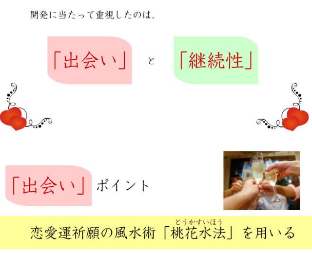 恋愛運祈願の風水術「桃花水法」を用いる。