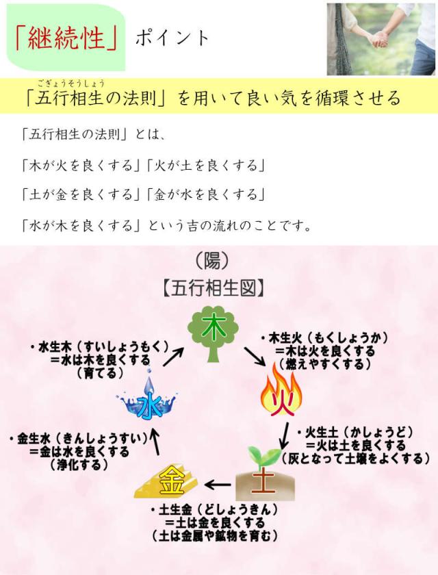 「五行相生(ごぎょうそうしょう)の法則」を用いて良い気を循環させる。