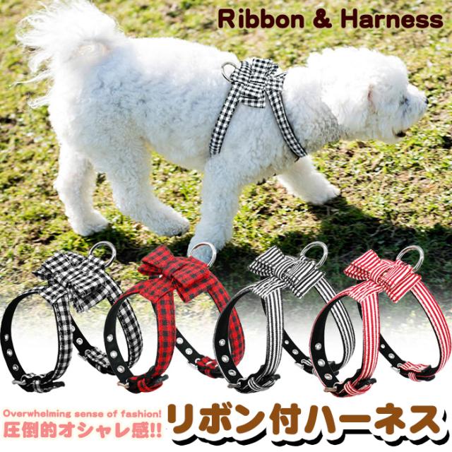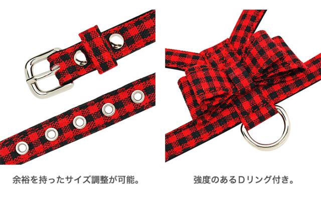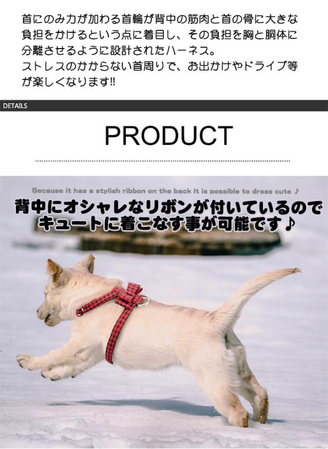 犬 猫 ハーネス チェック ペット 服 胴輪 キャット ドッグ リボン h0229