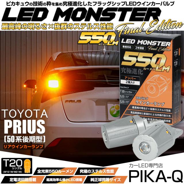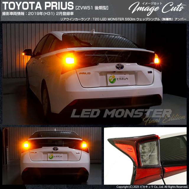 ピカキュウ,LED専門店ピカキュウ,LED,ウインカー球,オレンジ球,リアウインカーランプ,リアターンシグナルランプ,LED MONSTER,LEDモンスター,t20,T20シングル,ウェッジ球,wy21w,w21w,WY21W,W21W,オレンジ,アンバー,橙,トヨタ,TOYOTA PRIUS,50プリウス,50系プリウス,後期,ZVW51