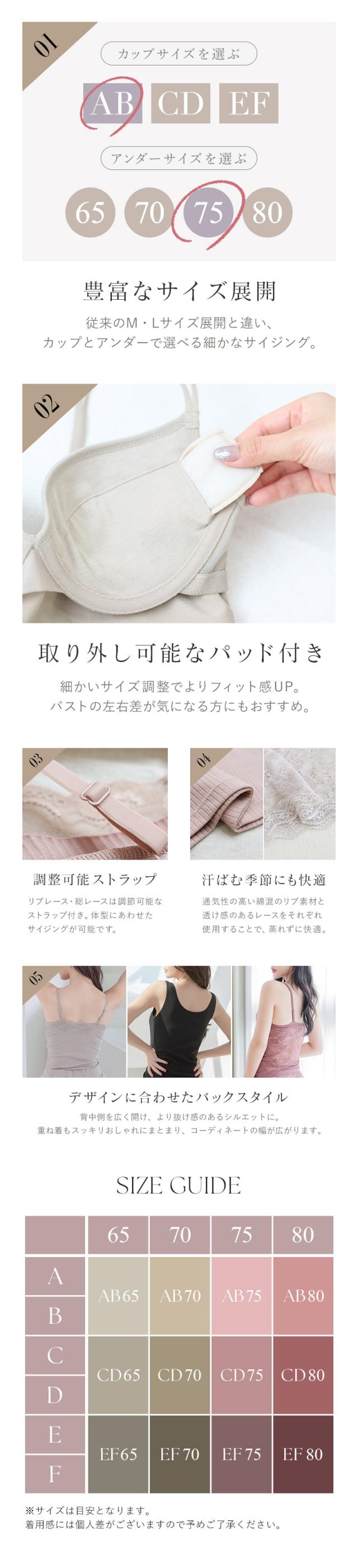 ※こちらはワイヤー入りタイプの『リブキャミ』『タンクトップ』『総レースキャミ』の販売ページです。