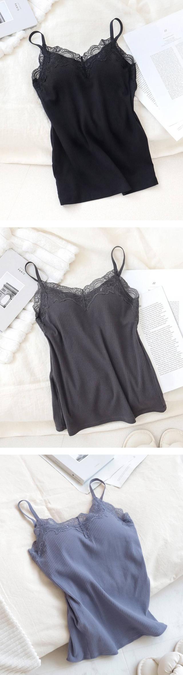 ![]() ノンワイヤー リブレースキャミ/リブキャミ(浅V型) |