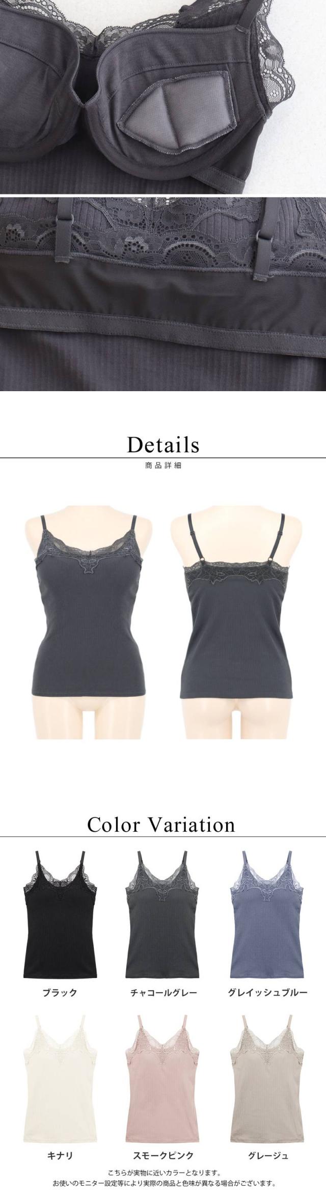 《総レースキャミソール》ナイロン・ポリウレタン・その他 《リブキャミソール》綿・ポリウレタン・その他 《タンクトップ》綿・ポリウレタン・その他 |