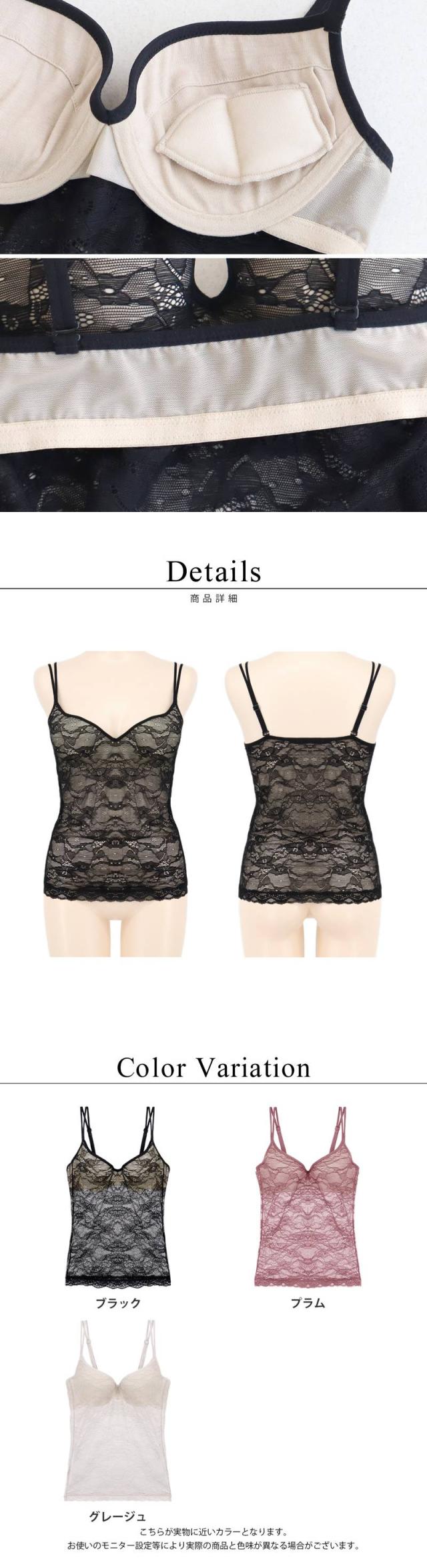 - リニューアル前のレースキャミを着てました 丈が短く着にくい上に、胸の形があまりキレイに盛れなかった リニューアル後のものは、非常にキレイに盛れました。 サイズは、普段のアンダーサイズより1つ下がいいか...