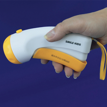 握り部を繰り返し握ることにより内部の発電機が発電し点灯するので電池は不要です。
