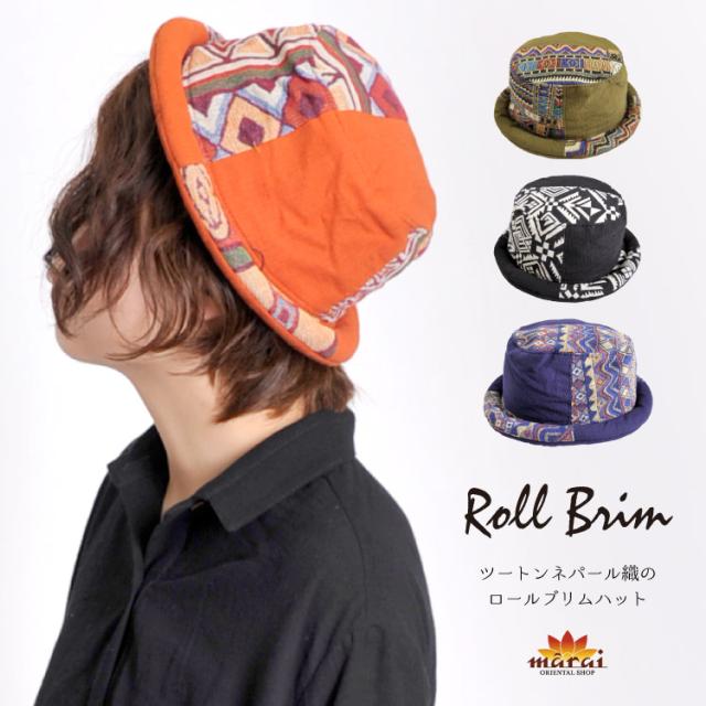 “まあるいフォルム”とツバが丸まった“ロールブリム”、ツートンの“ネパール織り”
