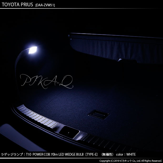 | ピカキュウ,LED専門店,LEDバルブ,COB,シーオービーチップオンボード,LED,SMD,T10ウェッジ,ハイブリッド車対応LEDバルブ,明るさ70ルーメン,定電流回路搭載,ラゲッジランプ,ホワイト,トヨタ,toyota,PRIUS,50系プリウス,50プリウス,ZVW51 |