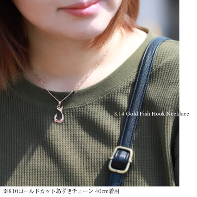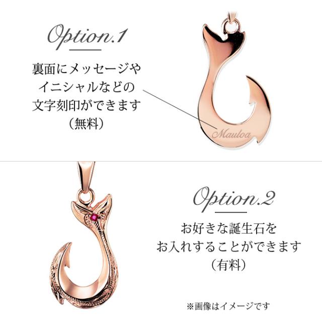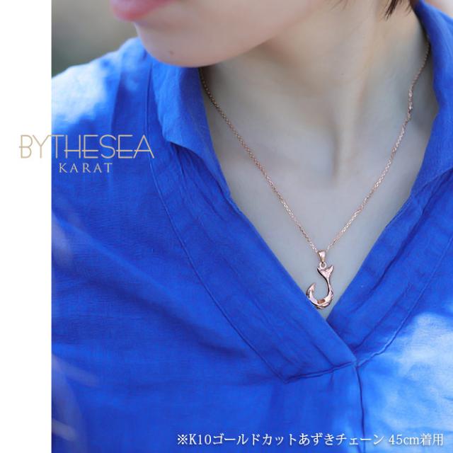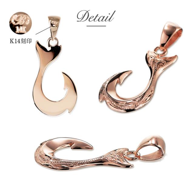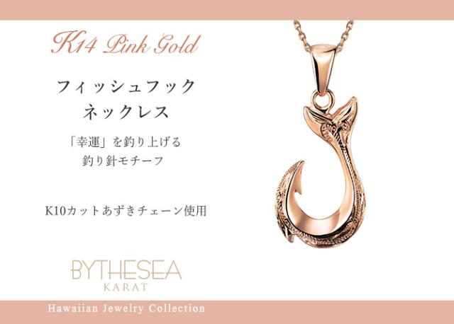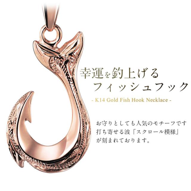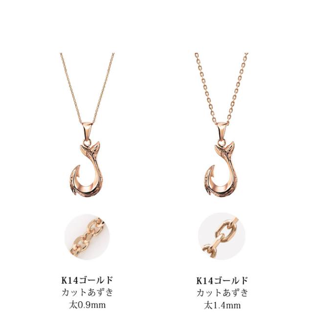 ゴールド ネックレス ハワイアンジュエリー フィッシュフック モアナ ピンクゴールド ネックレス 刻印 無料 誕生石入れ可 幸せを釣上げる 14K K14 K10カットあずきチェーン太さ0.9mm ギフトラッピング可能 プレゼント クリスマス 【品番:CG-GP113R-228SDC4】