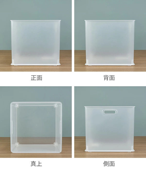 きっちりと積み重ねることができるので、省スペースでの収納が可能です。スタッキング時も溝がはまることで、ずれにくく安心です。中身を隠しておきたいときは別売りのフタをすればOK。フタをしたまま積み重ねることもできます。